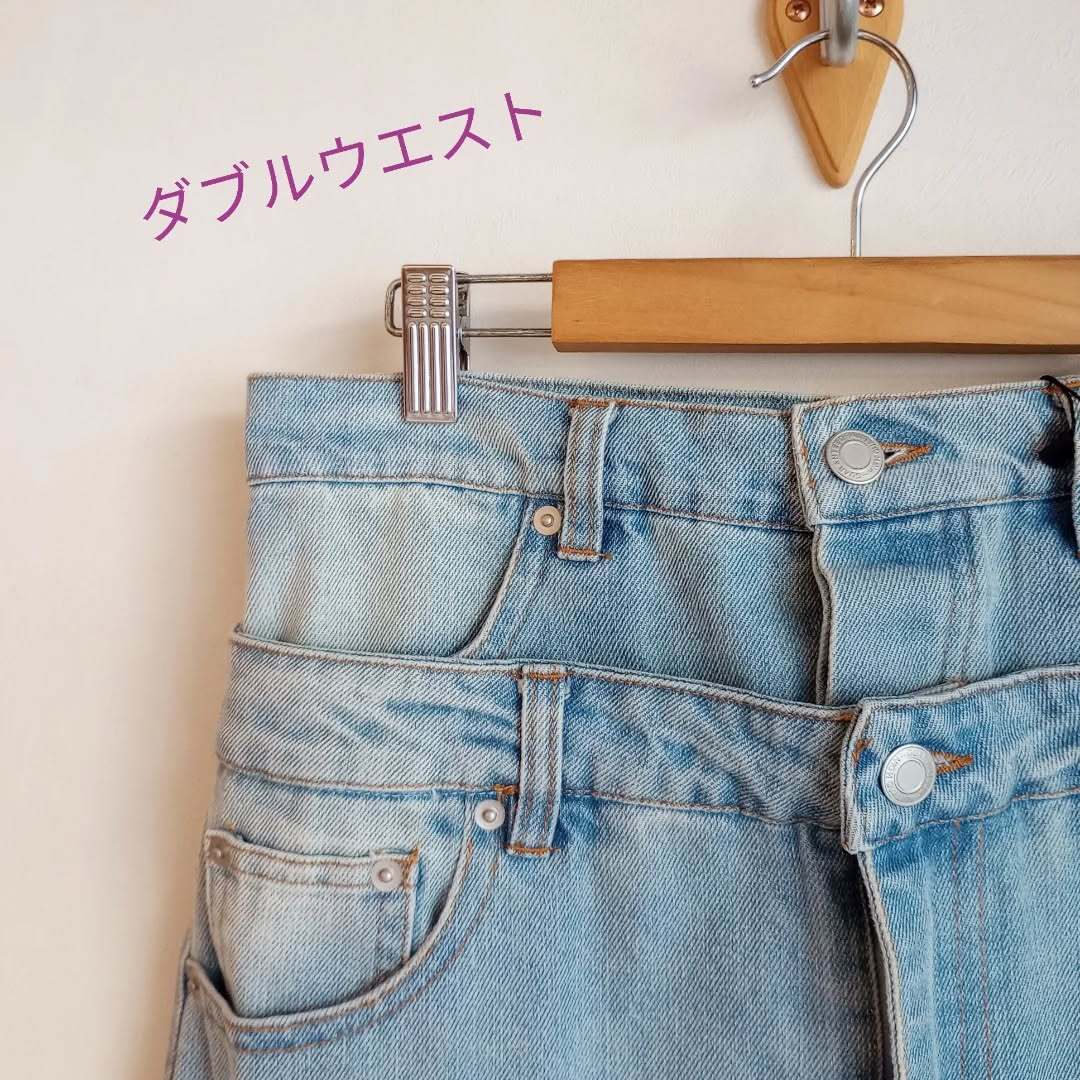 重ね履きしたかのようなウエストデザインが、個性的なスカート。