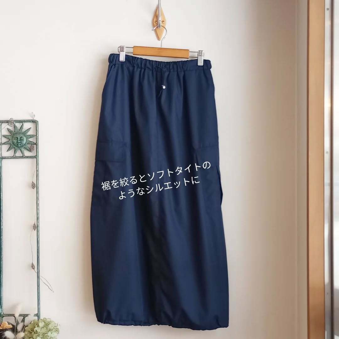 裾にドローコードが付いていて、絞るとソフトタイトシルエットに変身します♡