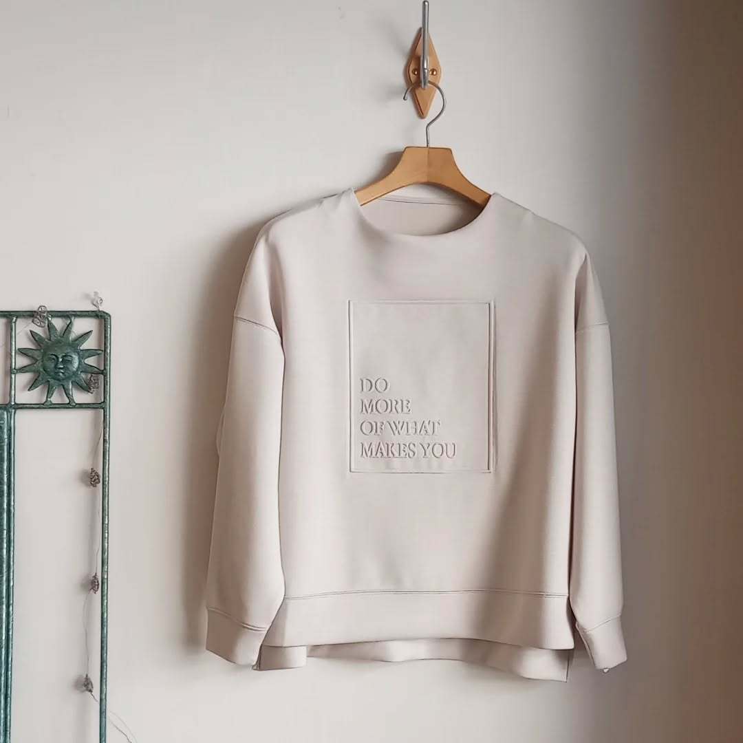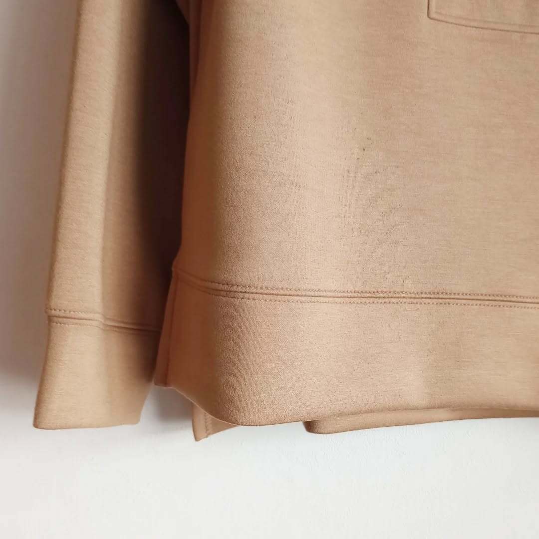 光沢と程よいハリ感で、カジュアルにもきれいめにも使えるダンボールニットプルオーバーです。