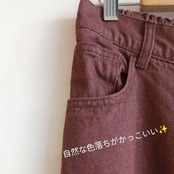 赤茶色のカラーデニムワイドパンツ。