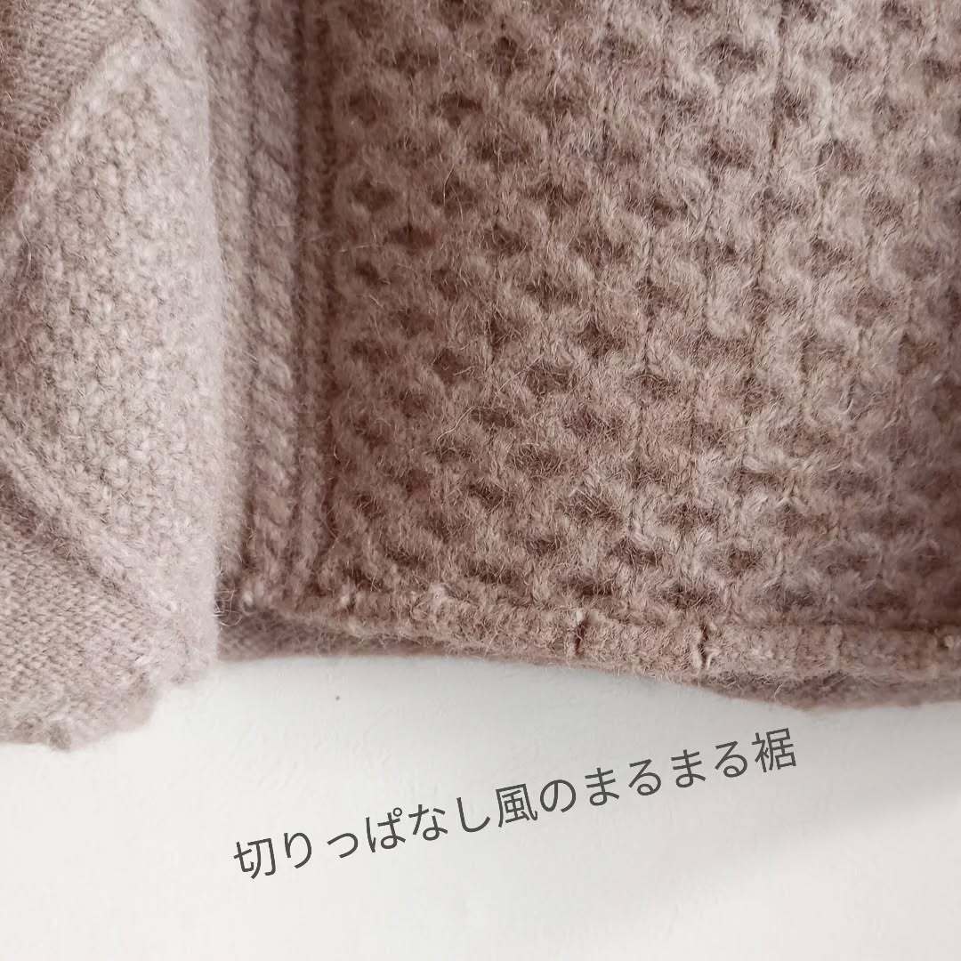 ダメージと言っても裾だけですが、切りっぱなしのように仕上げられ、くるんと自然に丸まるようになっています。