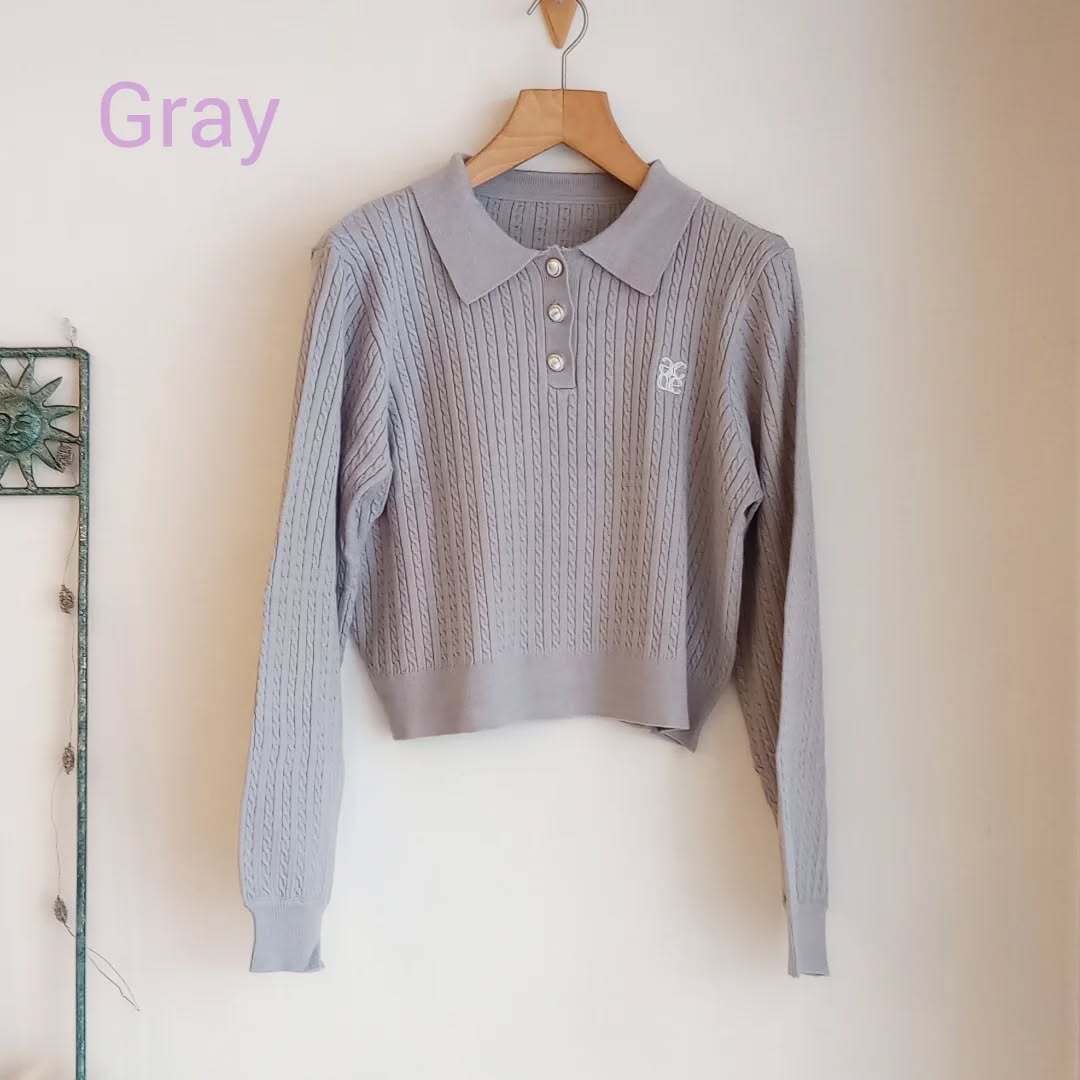 襟付きケーブルニット