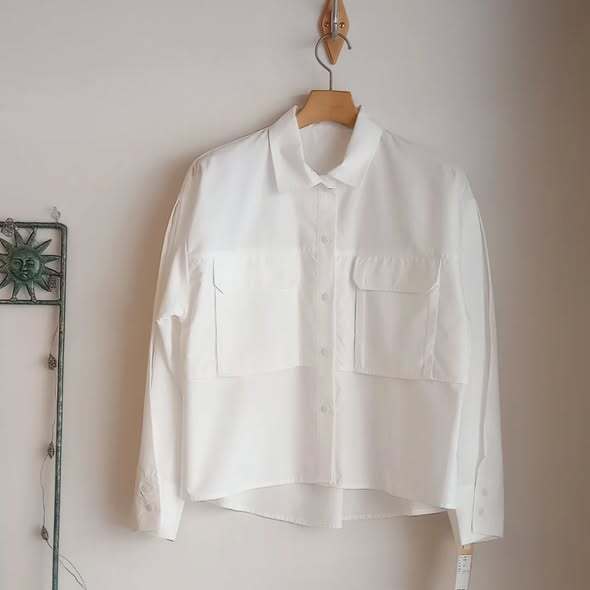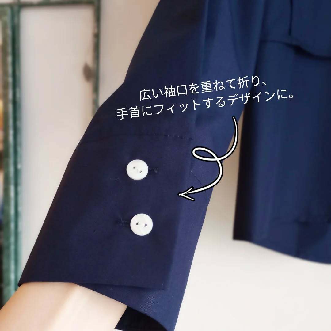 一見、普通のブラウスに見えますが、袖口やポケットのデザインが個性的。
